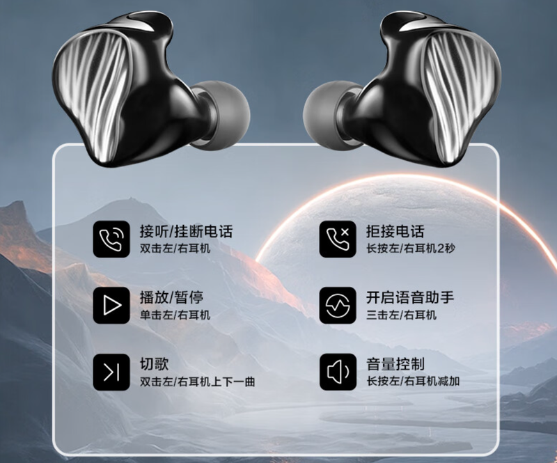 交互逻辑上,惠威AW-75与主流的TWS耳机类似,支持开盖直连,智能佩戴检测等功能。也支持常见的交互手势,双击接听、挂断,长按拒接电话,单击播放与暂停等,触控区域较大,有着灵敏的使用反馈感。
